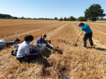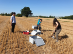 Soil sampling (left) and winter wheat (right) at the Global Change Experimental Facility.