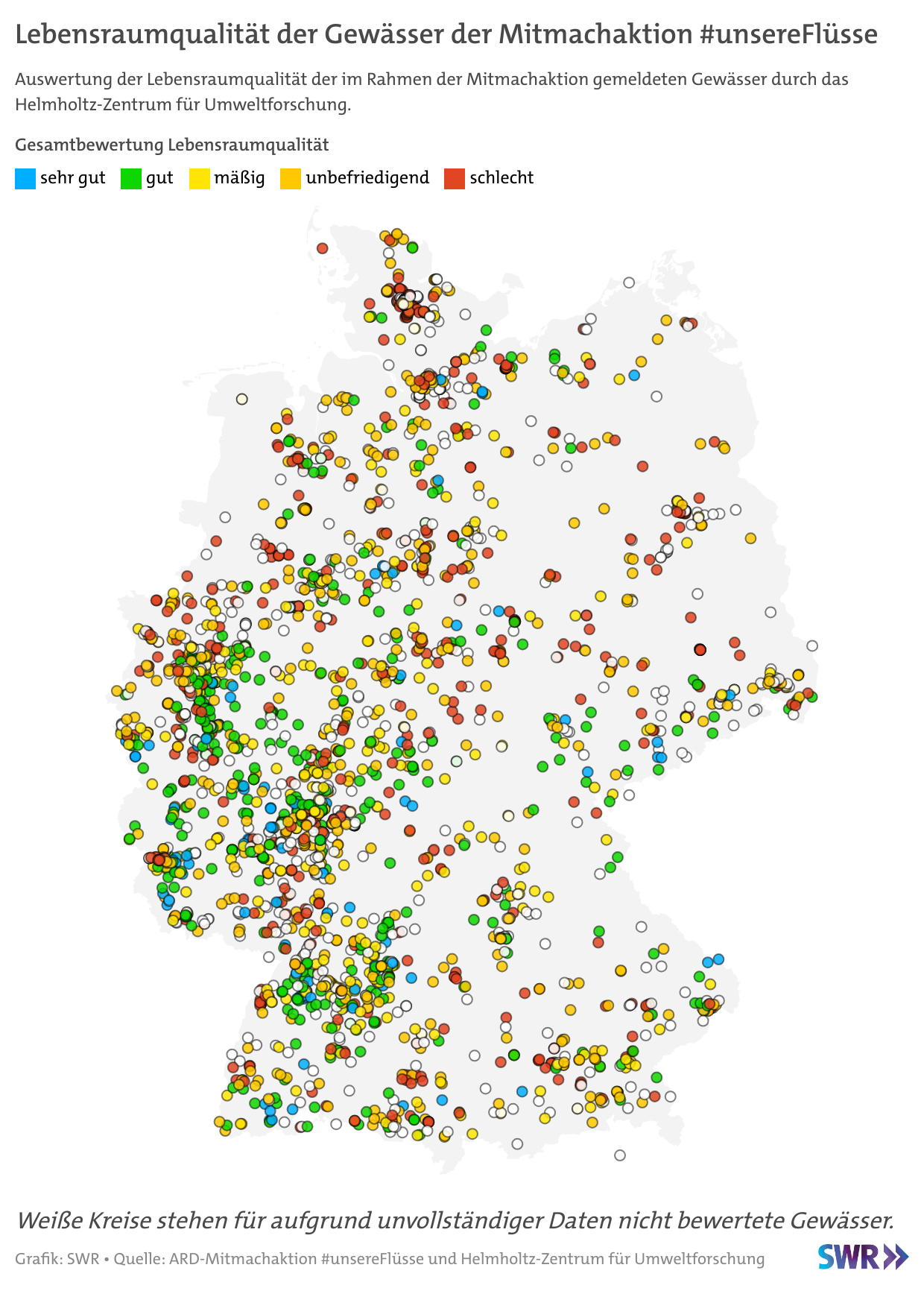 Damit unterstreicht die Auswertung der Fragebögen und Fotos der ARD-Mitmachaktion #Unsere Flüsse die Ergebnisse wissenschaftlicher Studien wie dem UFZ-Kleingewässermonitoring (KgM) und dem Citizen Science-Projekt FLOW.