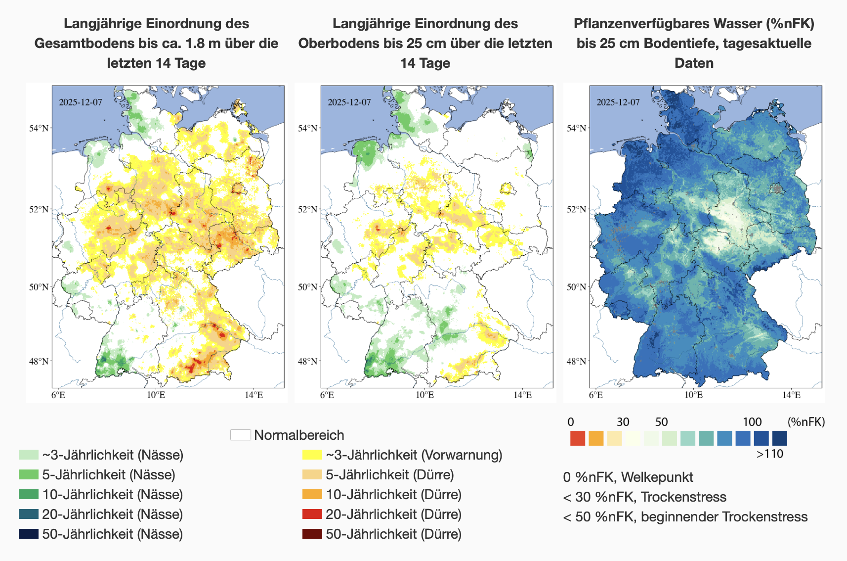 Herbst 2025: Bodendürre hat sich durch milde und meist nasse Witterung weiter entspannt