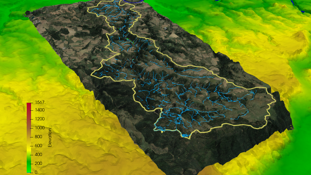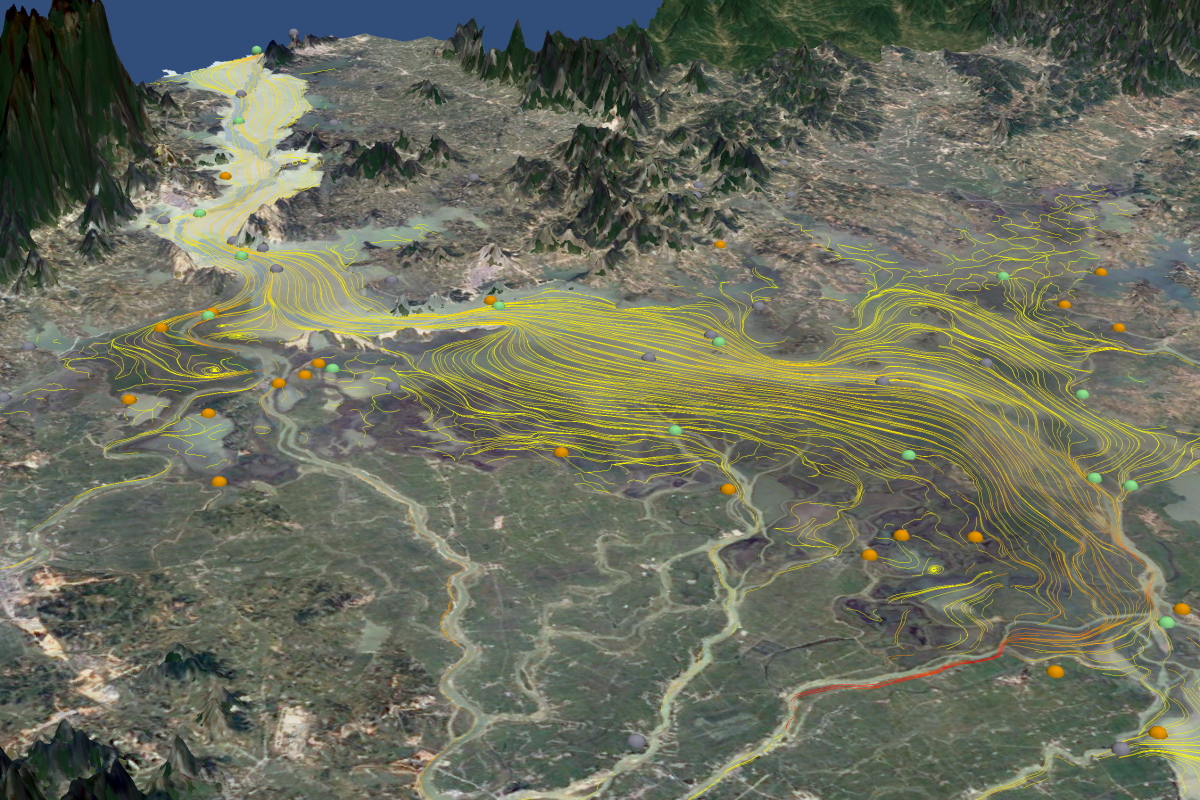 Virtual geographic environments for catchments of rivers or lakes, combining a wide range of 2D and 3D observation data sets with simulation resultsa for holistic analysis of water and solute dynamics.
