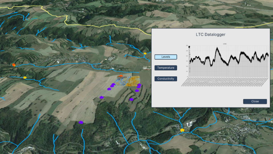 The hydrological study in the Müglitz catchment is part of the MOSES initiative (Modular Observation Solutions for Earth Systems, www.ufz.de/moses, coordinated by UFZ) investigating the impact extreme meteorological events on local hydrological processes. The presented visualization study is also a result of a close collaboration of the ESM and Digital Earth initiatives combining the expertise in monitoring and modelling environmental processes in a Virtual Reality framework.