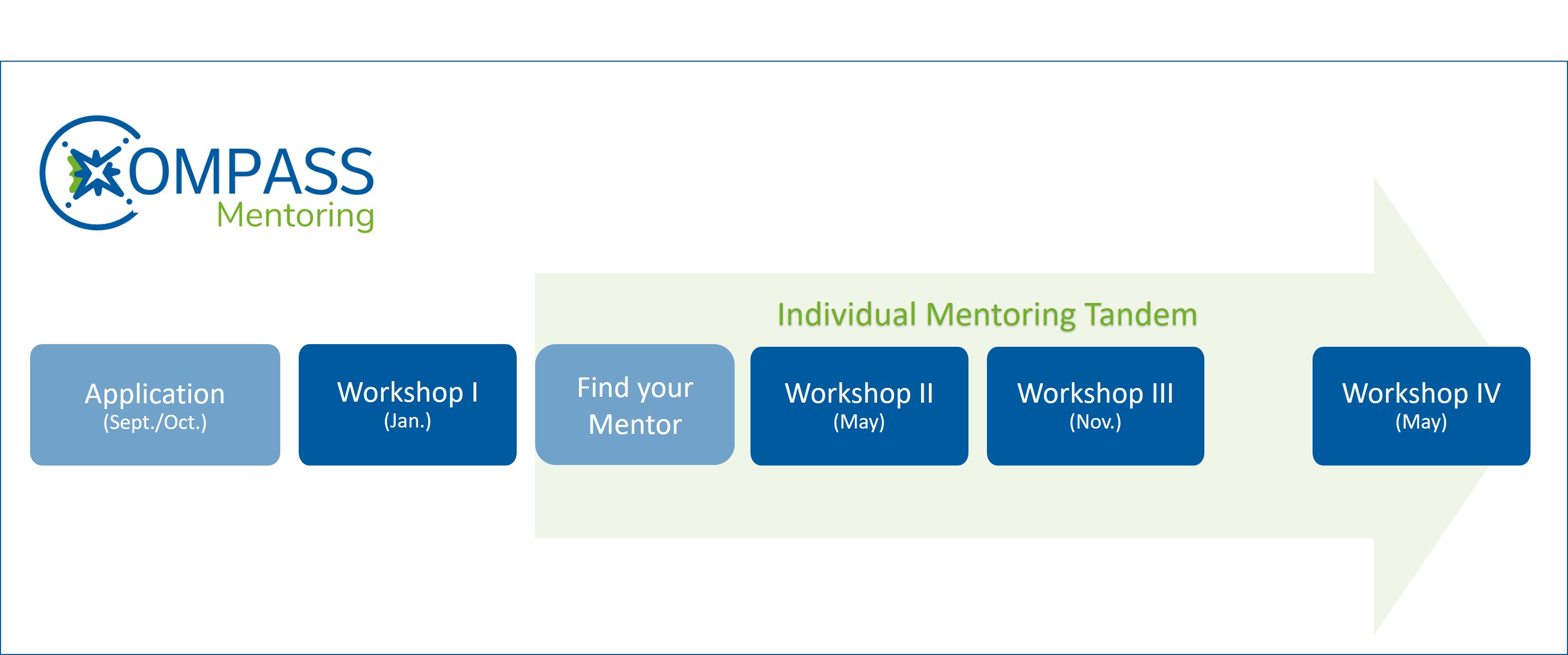 As a mentee of the COMPASS Mentoring program you will be supported in your active and goal-oriented career development. A framework program is specifically tailored to career situations in science and science management. The experts running the program will guide you to find a fitting mentor for your individual concerns. Mentors can come from any field, academia as well as the private sector, public authorities or the non-profit sector. Furthermore, you will have the opportunity to meet and exchange ideas with others at various events.
